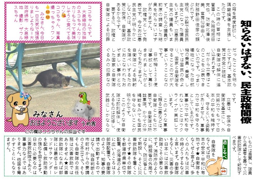 このような軍事に頼る立憲などは、自衛隊とともに不要です。自衛隊は所詮軍隊。かつての沖縄戦をみても国民を守らないことが明らかです。