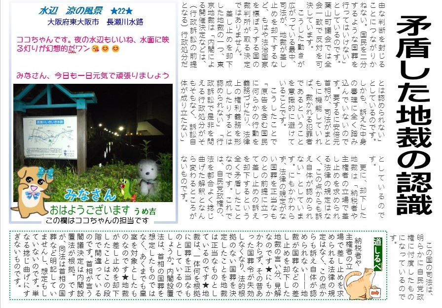 道しるべ 納税者や主権者の立場で差し止めを求められる法律の規定はなく、この点からも訴え自体が認められない――地裁が国葬などの差し止めを却下した地裁の言い分、見解なのです★にもかかわらず、その昔あった国葬令が失効しなくなり、法的根拠のない国葬を決定したことを地裁は正当なものとしているのです★地裁は、一体何を根拠に国葬を正当なものとしているのでしょうか。内閣設置法は、首相の国葬を想定したものではなく、あくまでも皇室を対象としたものなのです★地裁が差し止めを却下したことはこの段階で間違っているのです。首相が言う閣議決定は内閣設置法が根拠。ですが、同法は首相の国葬など明記していませんし、想定もしていないのです。単なる捻じ曲げにすぎないものです。