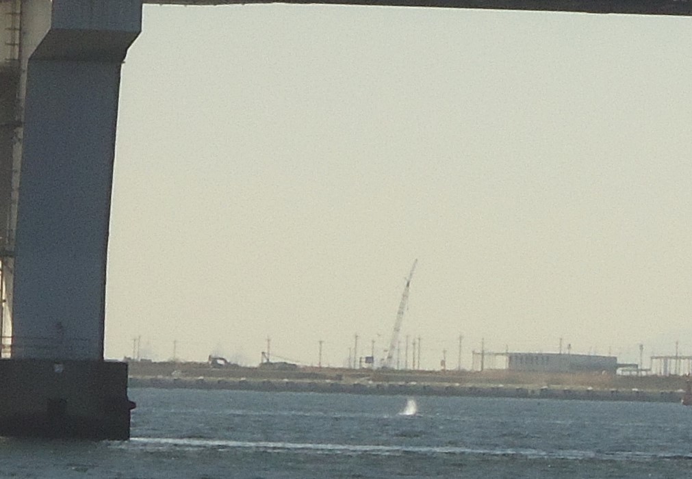 大阪市西淀川区西島の淀川河口で迷い子のクジラさんが見つかり、現地には多くの人たちが集まり、双眼鏡での見物や写真撮影で賑わっています。発見されてから3カ目になってもクジラさんはほぼ同じ位置です。11日午後、片道2時間20分ほどかけて現地を訪れました😘 潮を吹き上げている様子がわかりますが、デジカメでの撮影はこれが限界です😭😭