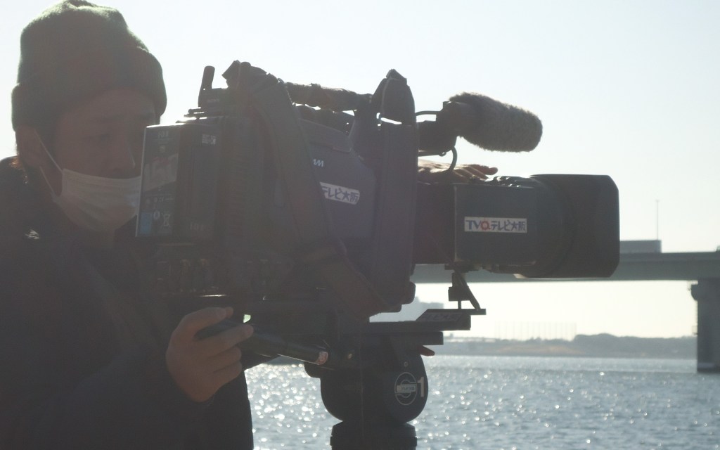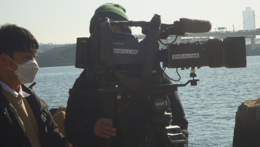 真正面にあたる陸地ではテレビ大阪がクジラさんを3人のスタッフで撮影・取材です🤗🤗