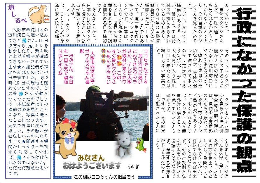 テレビ大阪も🐳さん撮影だけでなく、専門家に出演を仰ぎ、行政に訴えかける力もあったと思います。