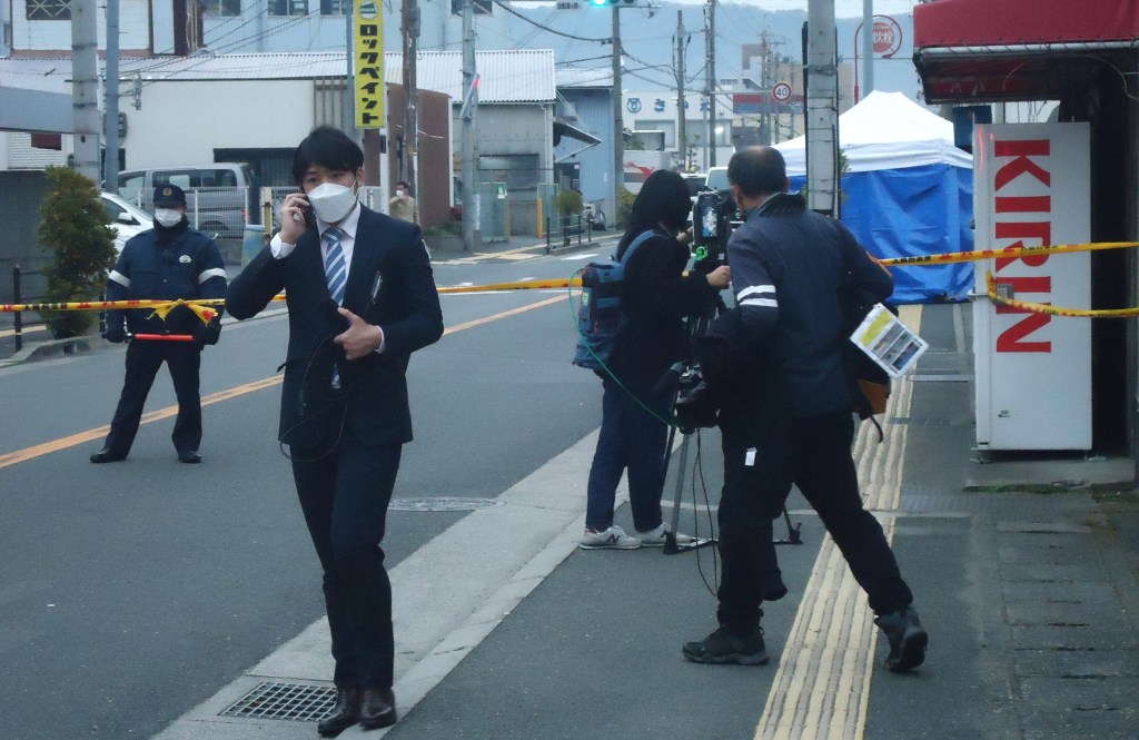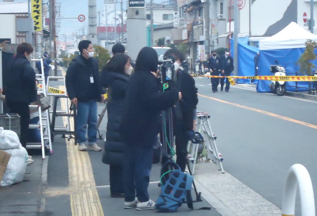 第1報を流した共同通信、現場でも取材にあたっています😁