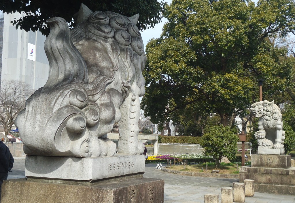 この住𠮷公園は、有名な住吉大社と隣接しているのです。と、言うより、この狛犬さんがいるまっすぐは、かって住吉大社の参道だったところなのです。
