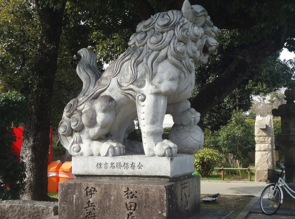 この狛犬そのものは、住吉景勝保存会によって置かれたものです。住吉公園そのものが、大阪で最高の歴史が観光地にもなっており、その名勝に恥じないような立派な狛犬さんにしたのだと思われます。