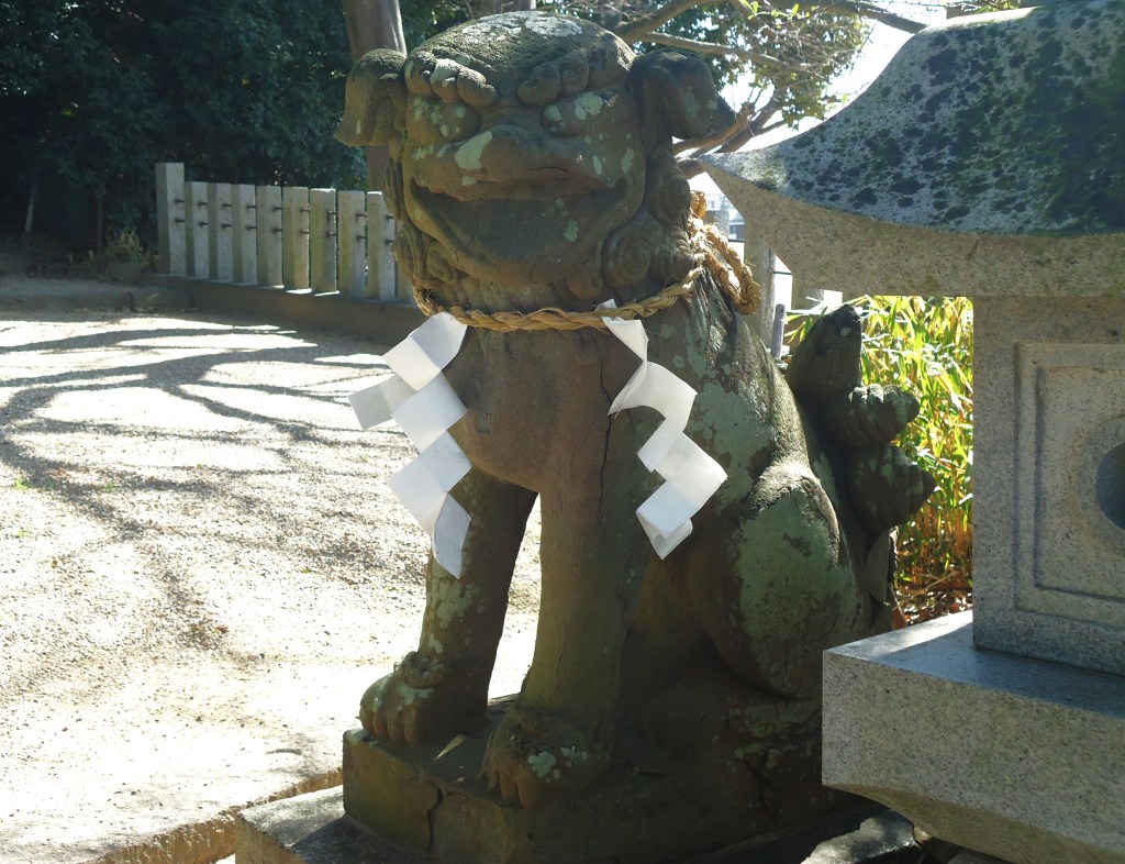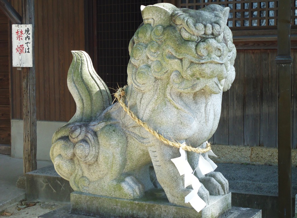 津堂八幡神社(つどうはちまんじんじゃ)のコマさんです。コマさん、神社の鎮座地は、古市古墳群を構成する古墳の一つであり、国指定の史跡・津堂城山古墳です😲😲