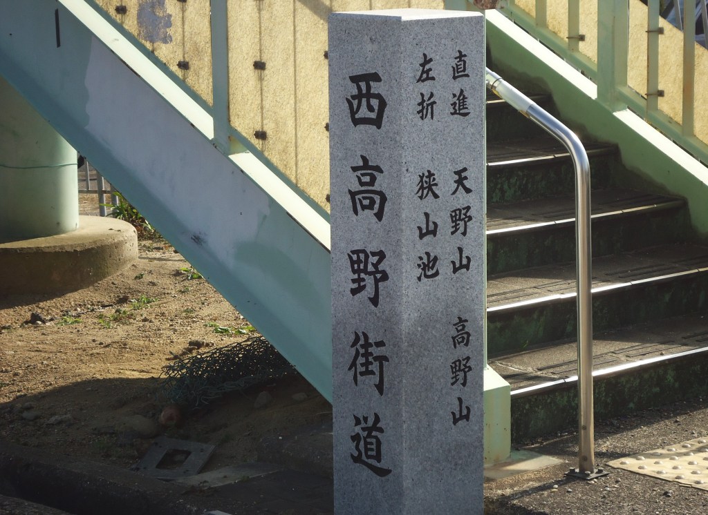 西高野街道は、ここから狭山市に入ります。歩道橋の下に道標が建てられています😍