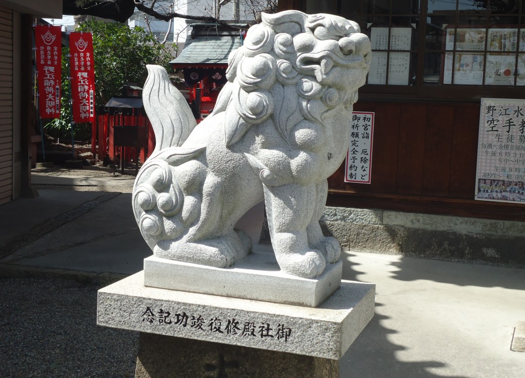 この写真今日撮影したものなのです。歴史街道である「京街道」が主目的の中、街道に近いところにあったのがこの水神社なんです。ほんと、きれいなコマさんです。