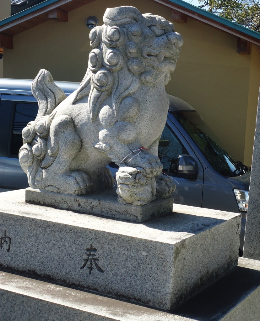 立派なコマさんですね!片足置いてるコマさんも貫禄があります!