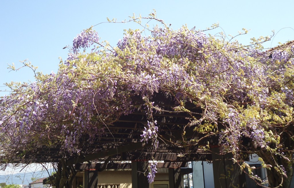 「藤色」が大好きですが、こんなに立派な藤棚を見たのは久しぶりです!!