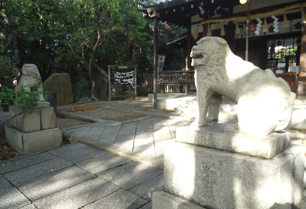 安居神社本殿前のコマさん