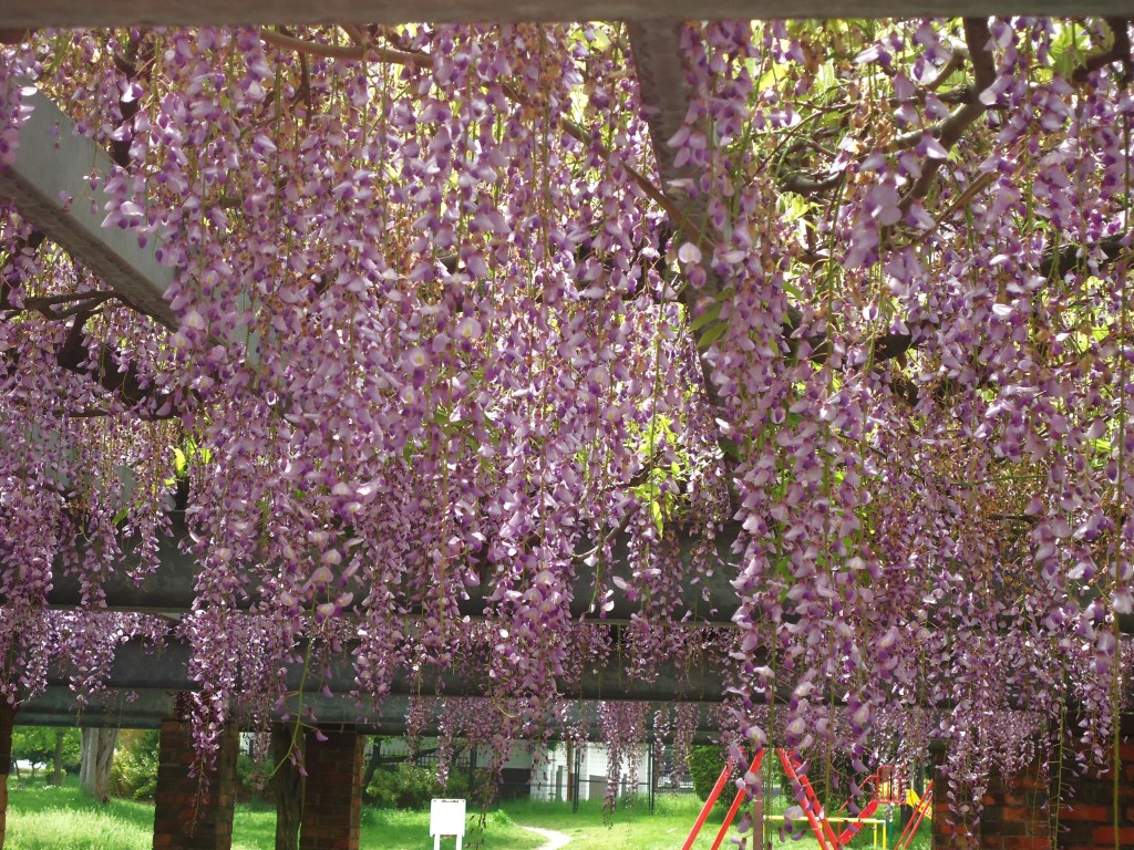この公園には4カ所フジ棚があり、その下にはベンチが置かれくつろげるようになっています🤗🤗