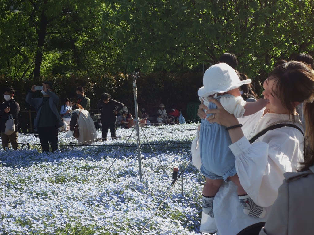 赤ちゃん抱っこしている写真も、子供が興味深々にお花見ているのも微笑ましいですね〜!