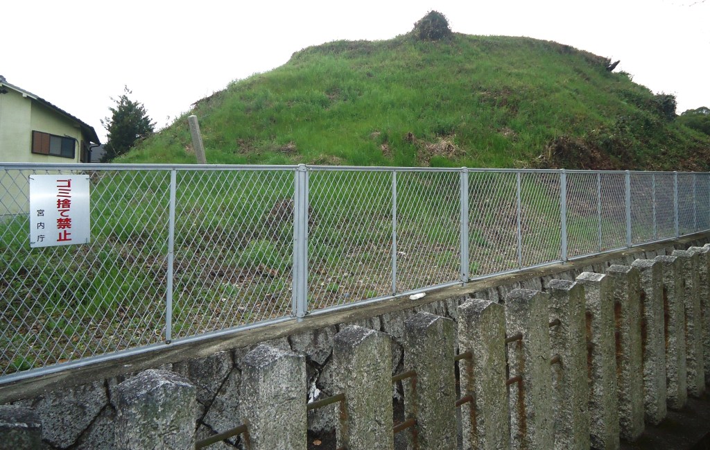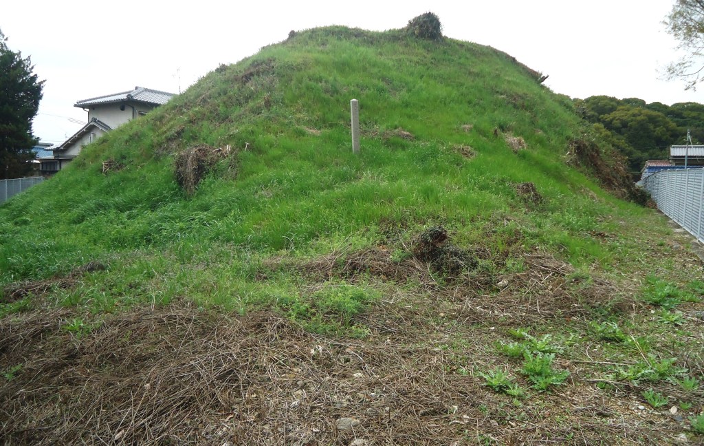 元々はは円墳でしたが、北側を細い道路と国府八幡神社境内に削られ、現在は半円形になっています😞😞