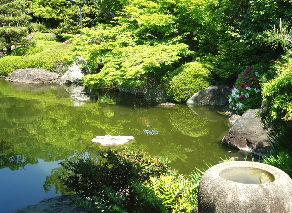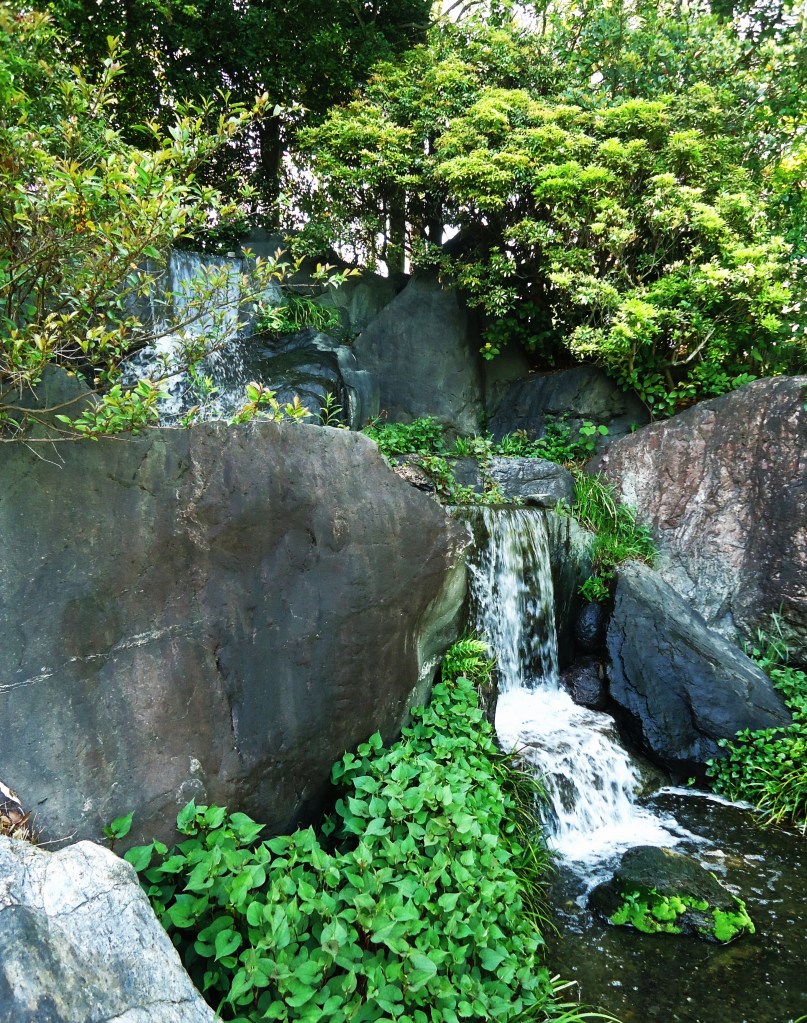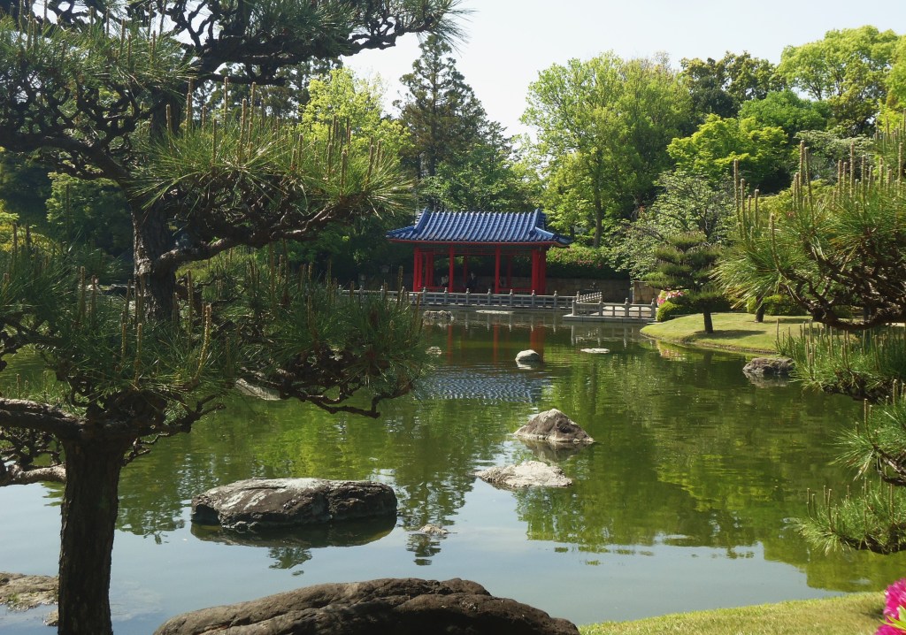 庭園左側最終地の桃源台は、泉北丘陵をイメージ、石津川の清流、庭園入口側の池、池泉(ちせん)は中国大陸と堺をつなぐ大海を表し、西側は中国にある友好都市連運港市を形成しているものです🥰🥰