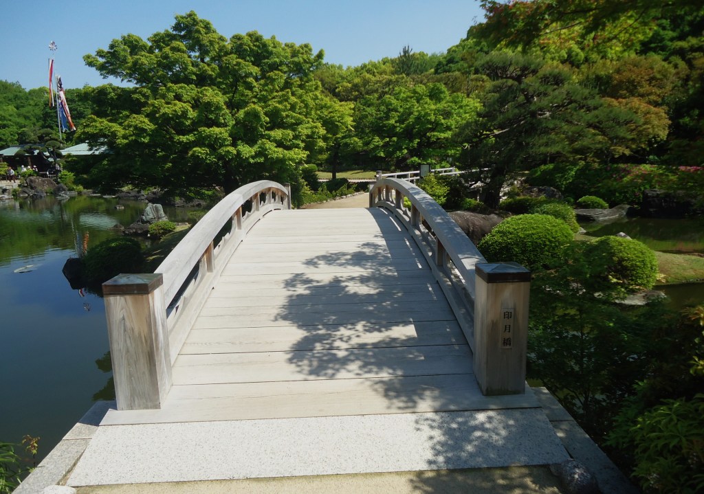 木橋の印月橋、日本庭園にピッタリな日本的な橋です😍