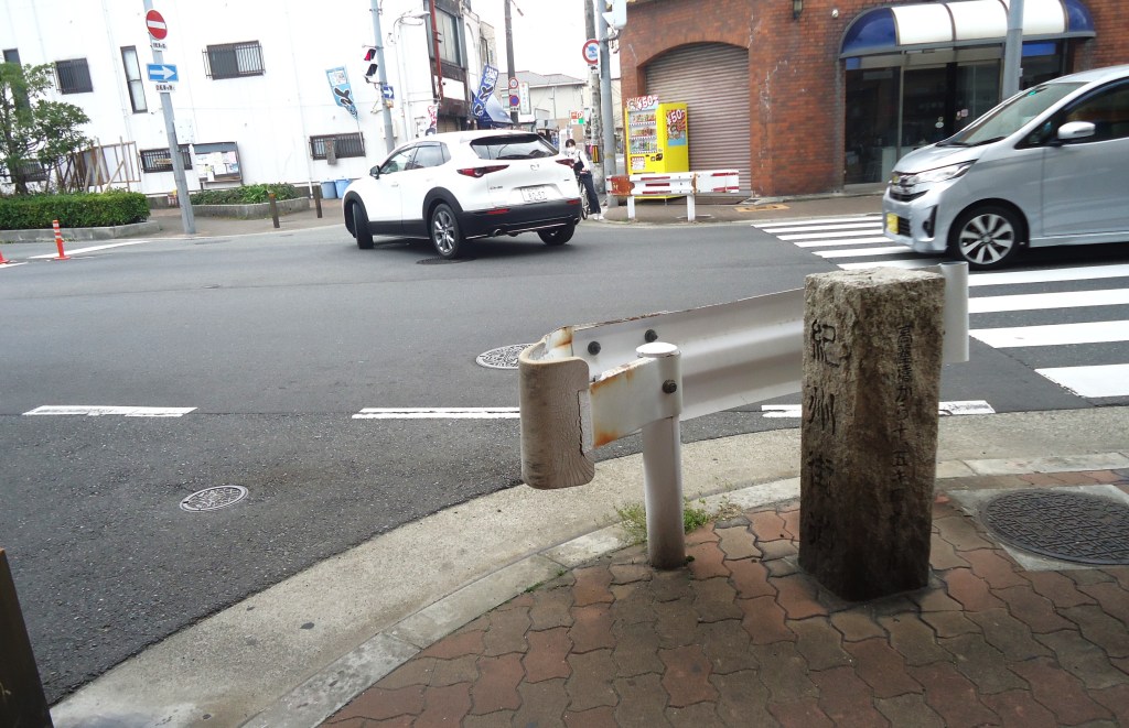 写真左側、ガードレールのすぐ後ろに道標があります😲