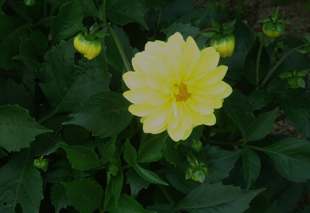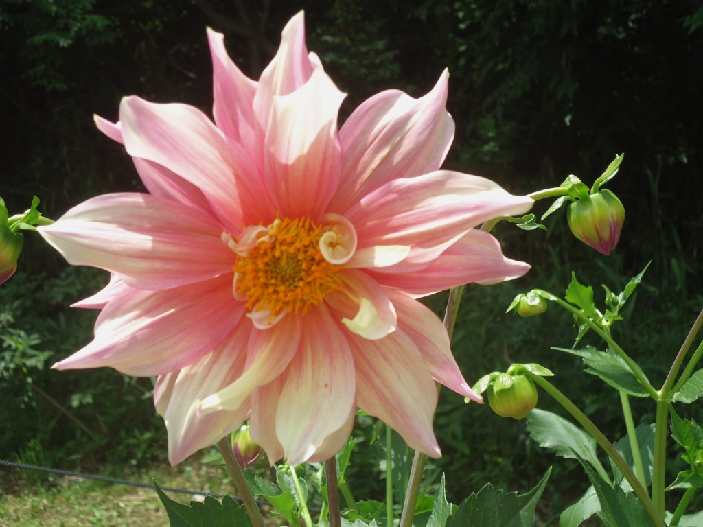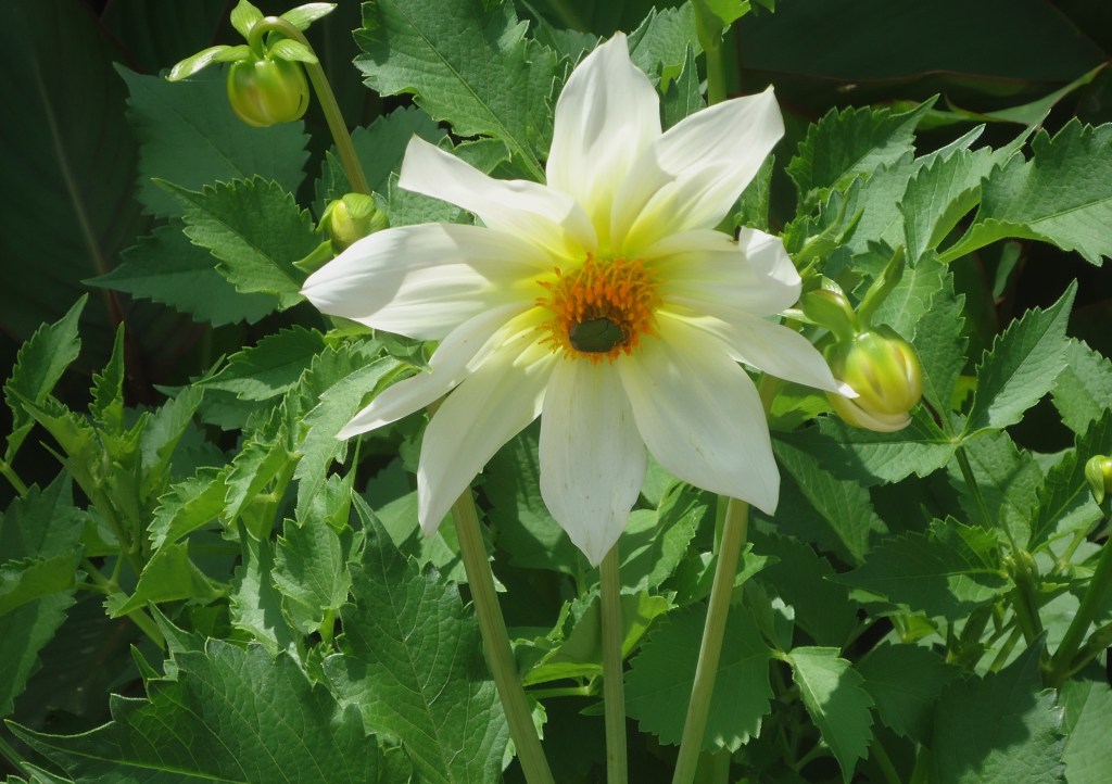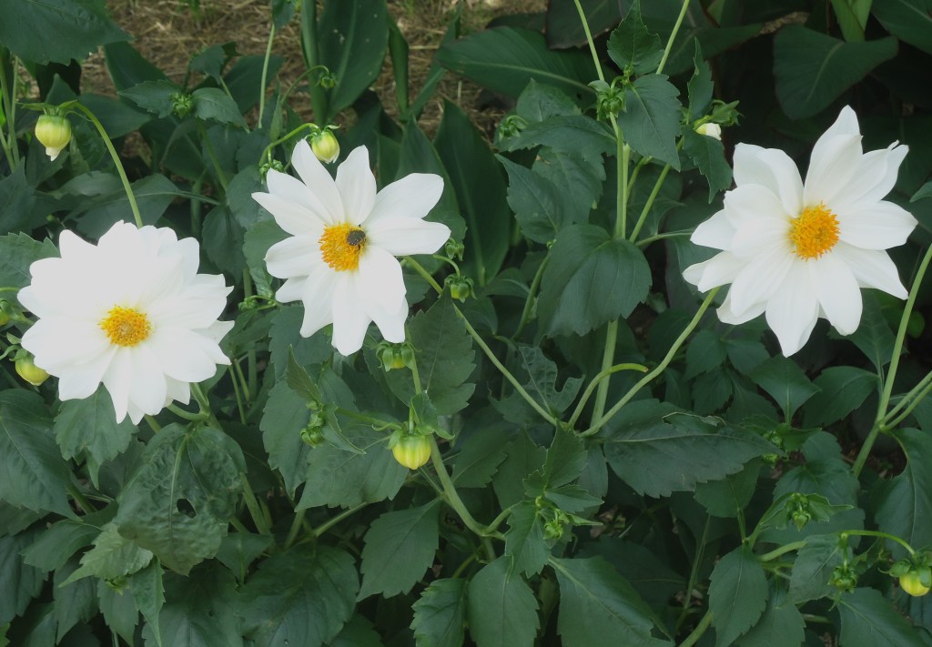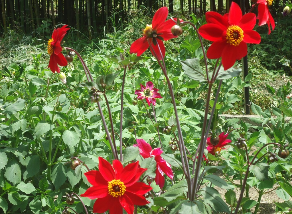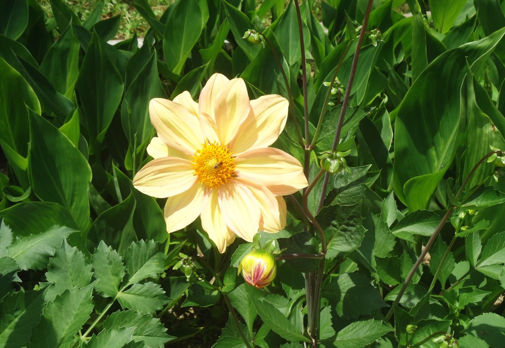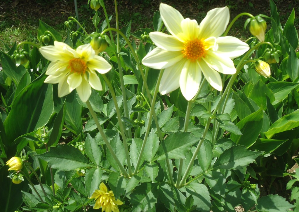 この日気温は24.5度だったのですが、高地が原産地のダリアにとって直射日光の暑さはきついようで、葉が垂れていました。雨が好きなのはアジサイだけじゃないようです😁😁