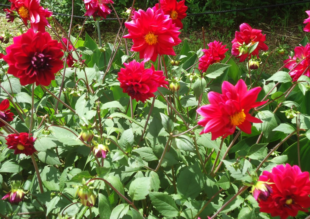 長居植物園のダリア花壇は、ボランティアの人たちが球根の取り上げ、植え付けなどを手掛けていることもあって品種の名がついていません。おそらく作業の過程で混ざってしまい、品種がわからなくしてしまったものと思われます😂😂
