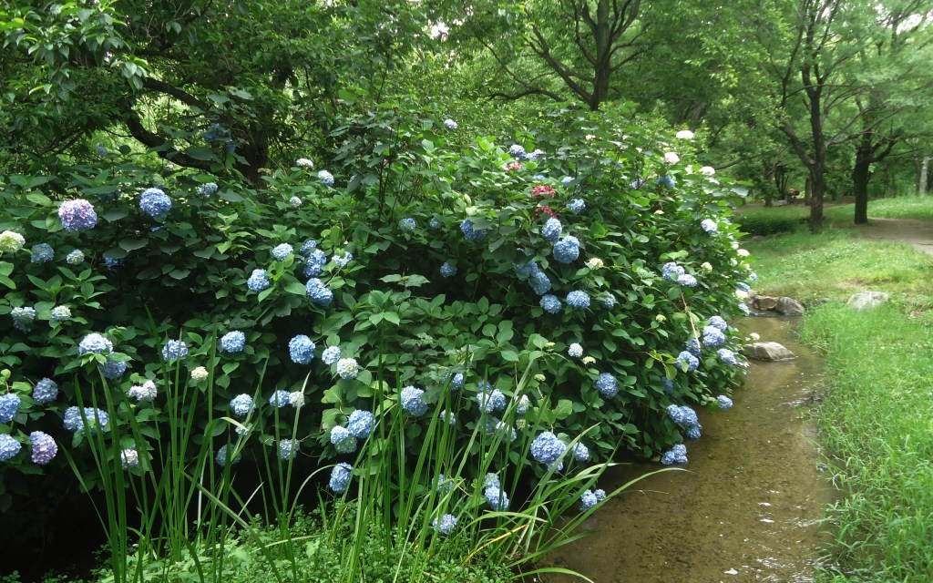 梅雨どきのアジサイ 緑のせせらぎ