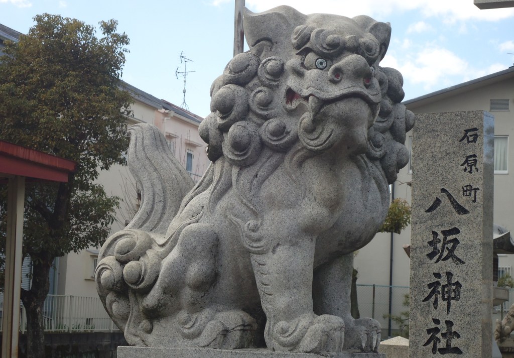 コマさんは、口に赤い色が施されており、それほど古い生れではないようです。それでもしっかりとこの神社を護っています🥰🥰