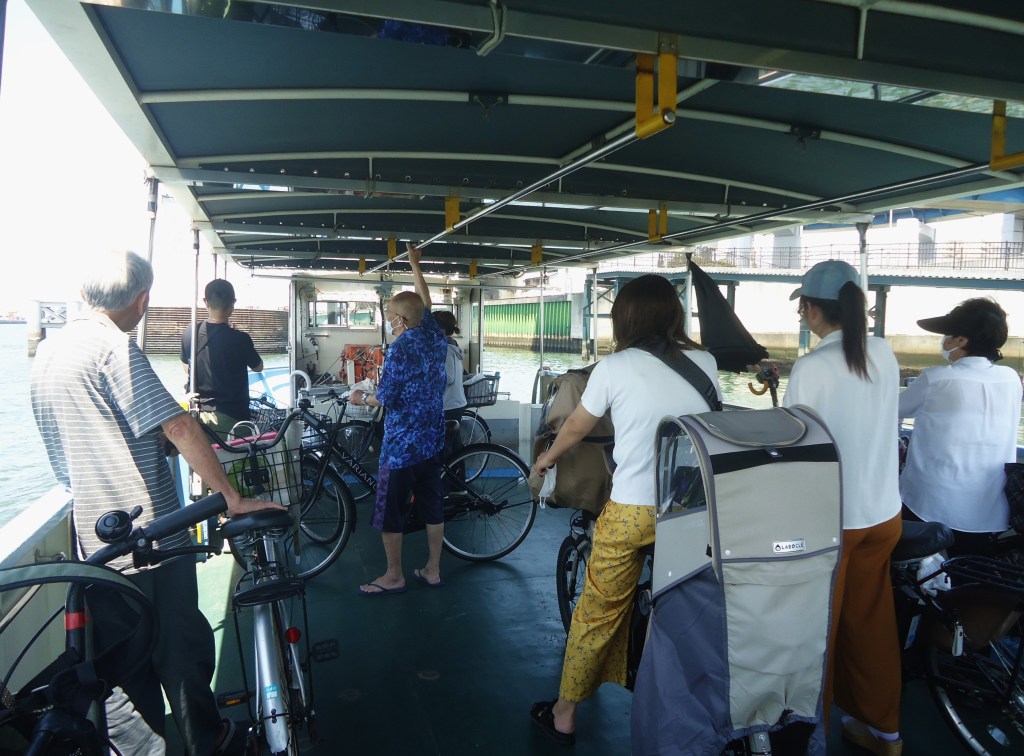 渡船を利用して対岸に渡る人たち。自転車利用者が多く見られます🤗