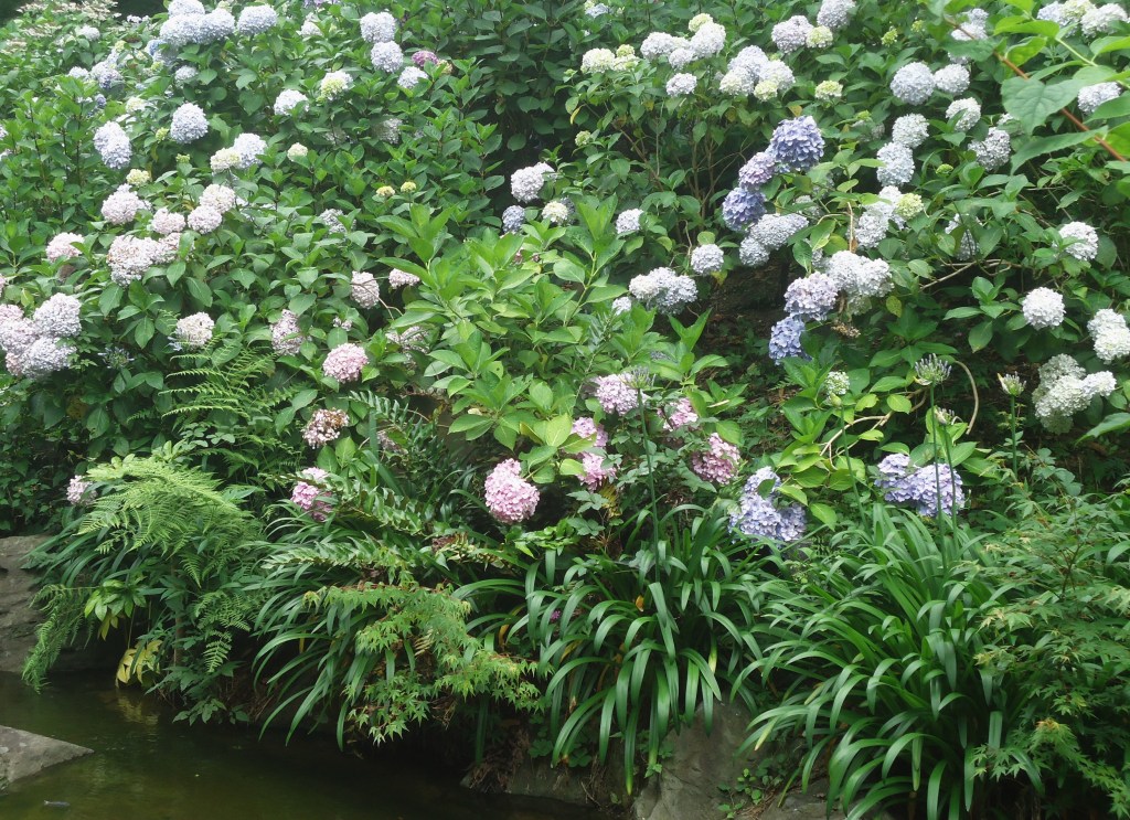 アジサイの谷、せせらぎに沿って咲くアジサイ😋