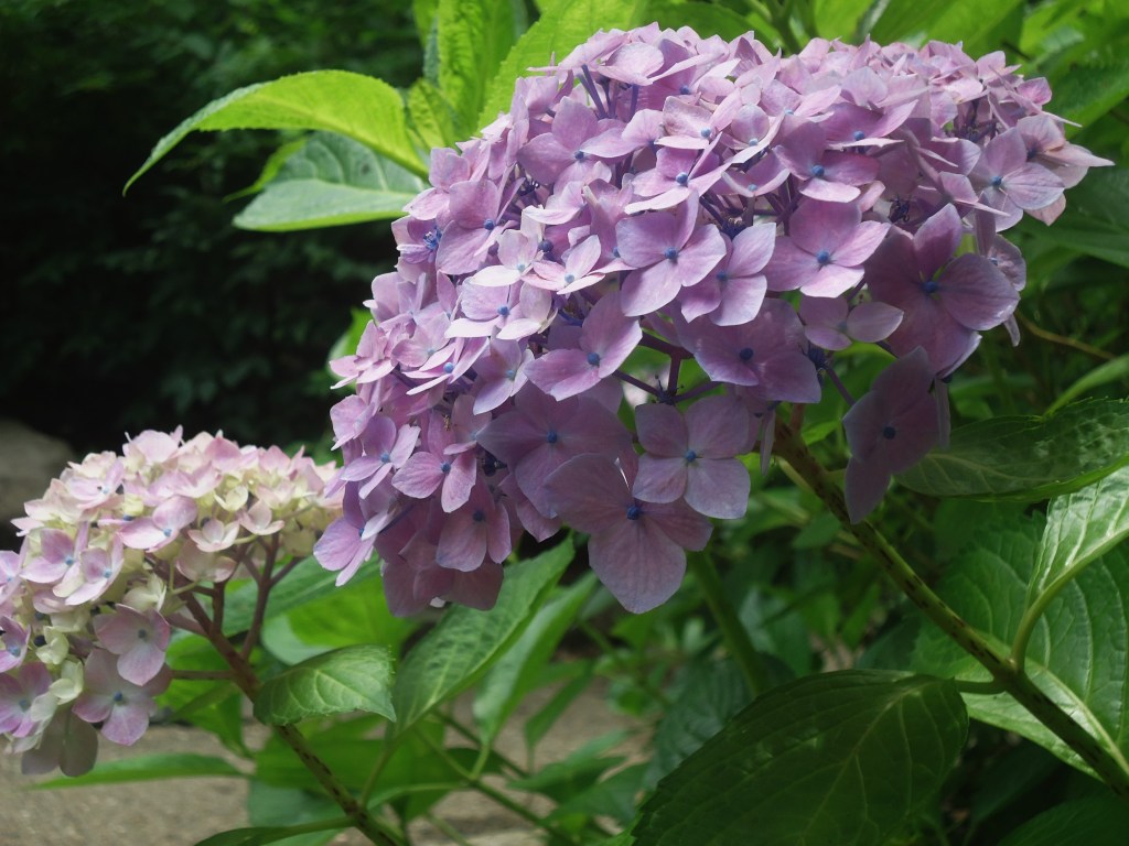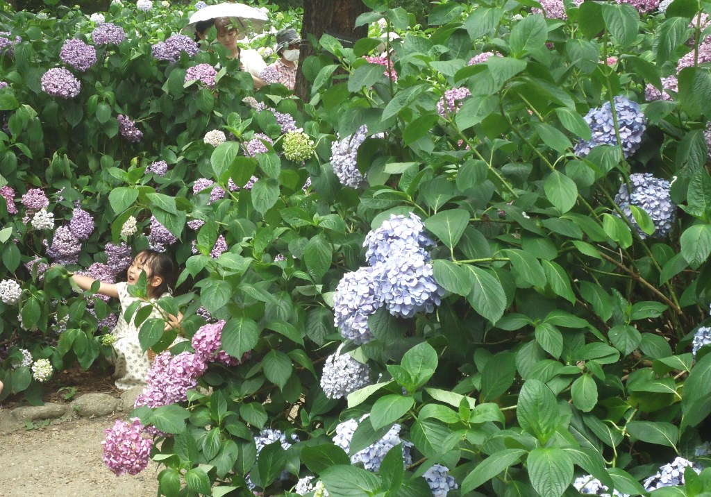 梅雨時のアジサイっていいですね。でも、晴れ晴れとしている日は葉がしおれ気味です。相当前、ことさら雨の日を選んで、合羽を着て出向いたことがありますが、雨降りのアジサイはとても生き生きして雨が好きなんだな~って感じました😂