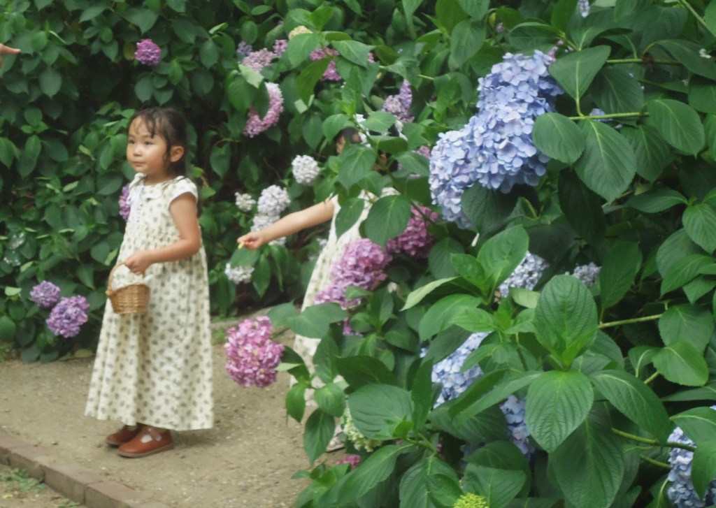 双子ちゃん可愛いです❤️背景の紫陽花がとてもいい雰囲気ですね!