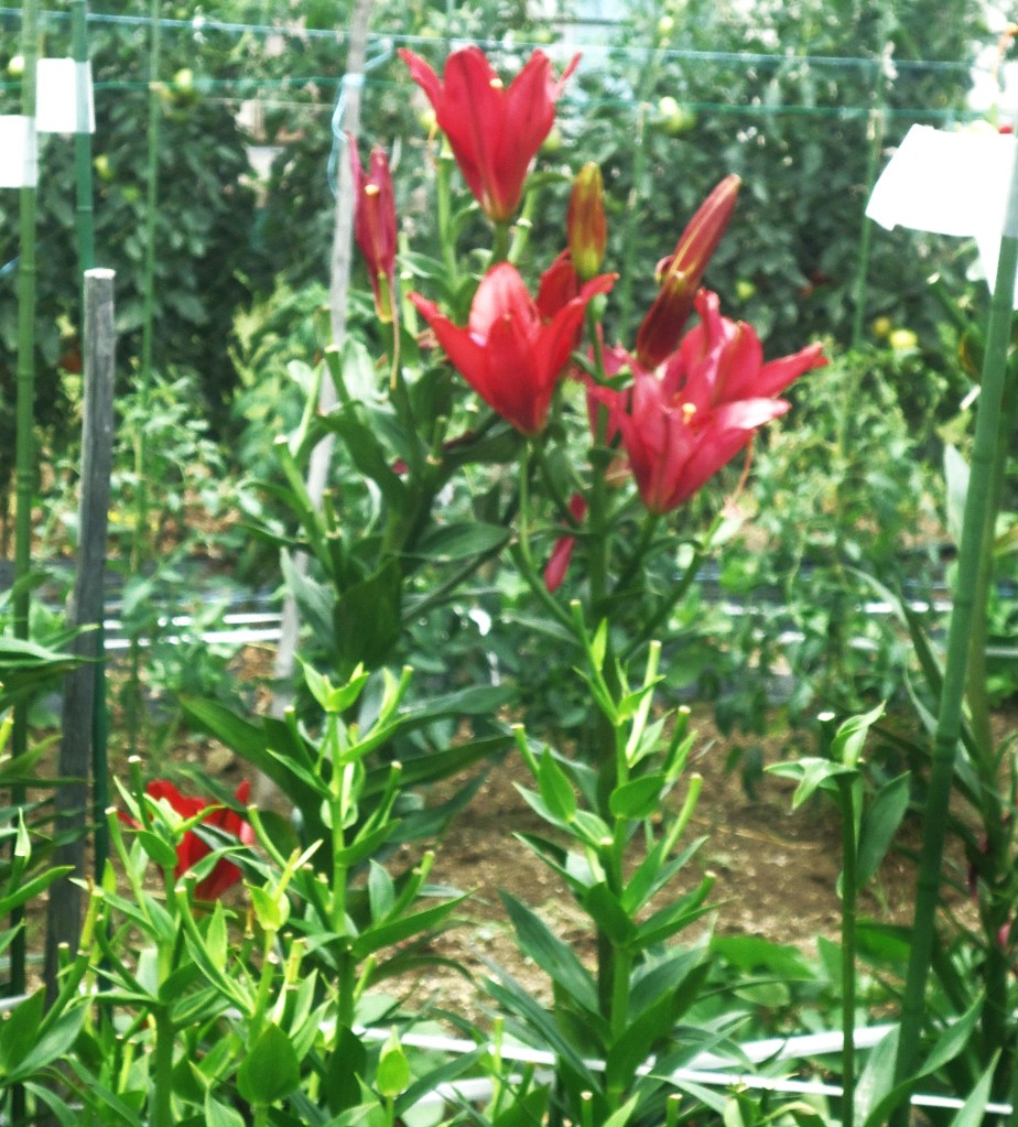 菜園のフチに植えられていたユリさん、もう幾つもの花が摘み取られています。良い球根にするため、枯れるまで花を置いておかないのです😲