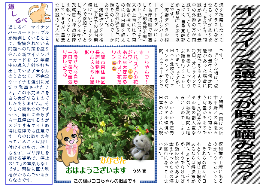 河野デジタル相は、不在中の国内業務について「オンラインで参加する」とし、副デジタル相や政務官に陣頭指揮を執ってもらうとしていますが、重要な問題の他人任せです。