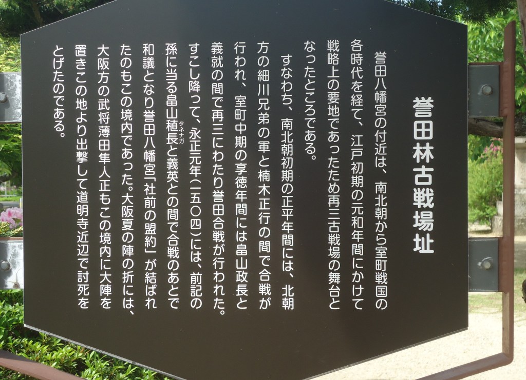 こうしたことから、人、物、金が集まるだけでなく、奈良や京都方面から侵攻してくる敵を防ぐ南河内の防衛拠点となり、誉田周辺では数多くの争いが繰り広げられています🤬