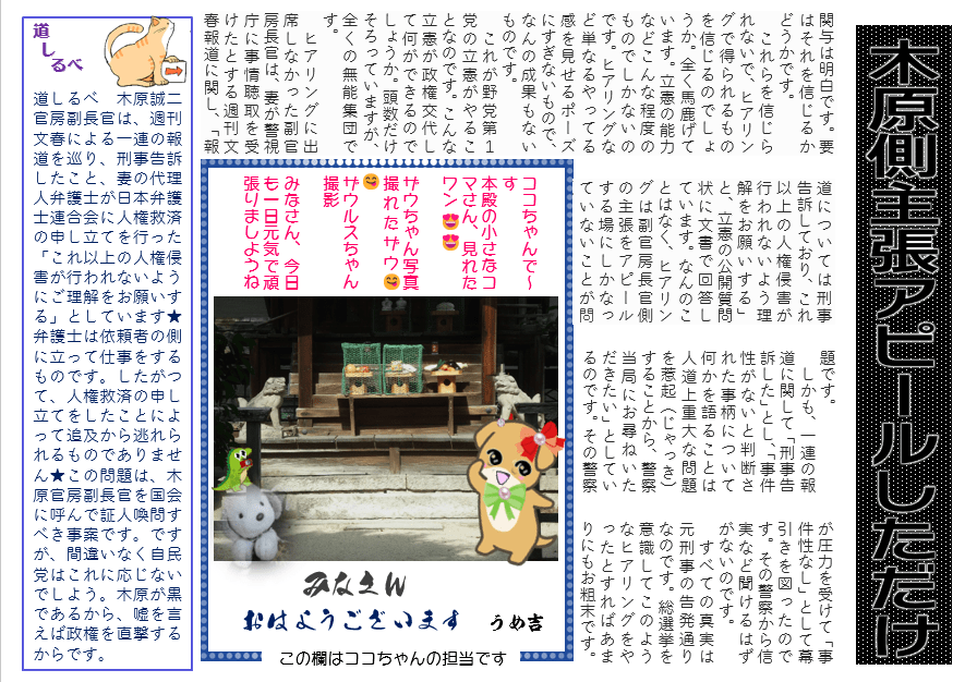 しかも、一連の報道に関して「刑事告訴した」とし、「事件性がないと判断された事柄について何かを語ることは人道上重大な問題を惹起(じゃっき)することから、警察当局にお尋ねいただきたい」としているのです。その警察が圧力を受けて「事件性なし」として幕引きを図ったのです。その警察から信実など聞けるはずがないのです。
