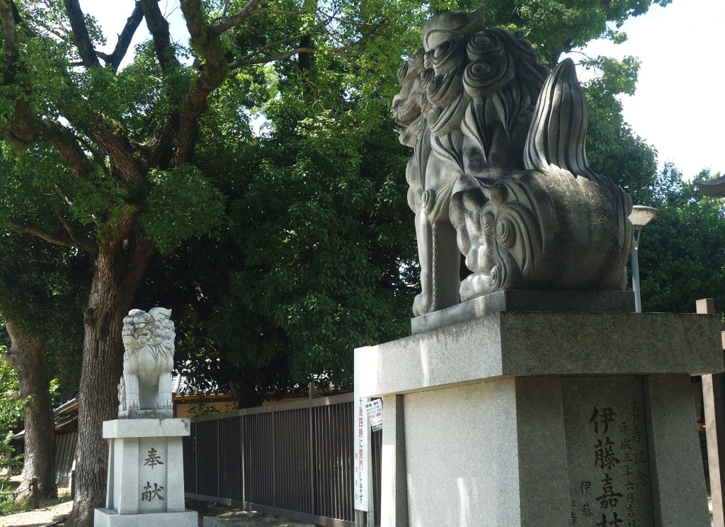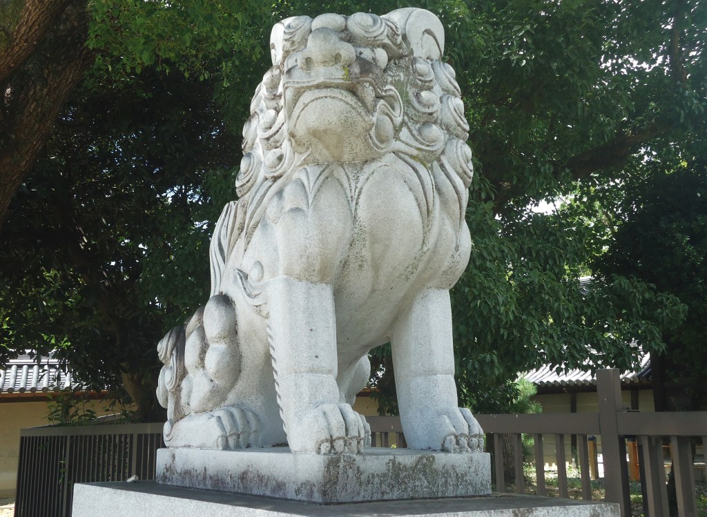 同神社では数いるコマさんですが、神社の右側、国道側を護っているコマさんです。氏子さんが喜寿の記念に建立したものでまだ29年です😊🥰