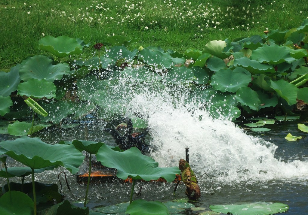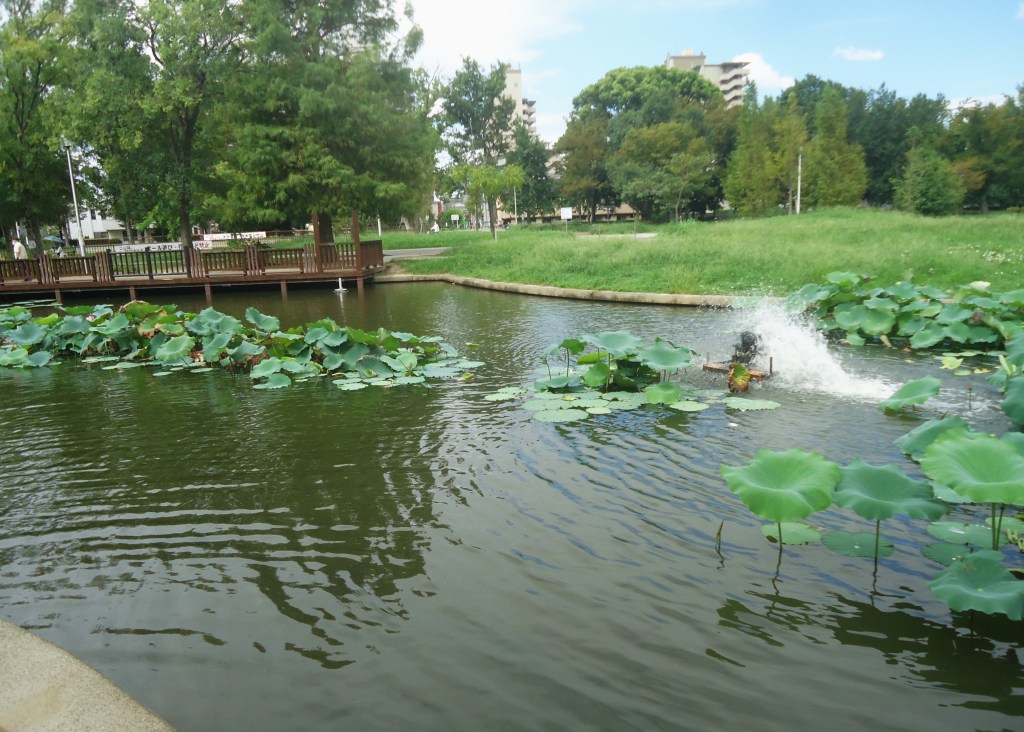久宝寺緑地にある心字池、水を掻き上げるその光景が涼を誘います🥰