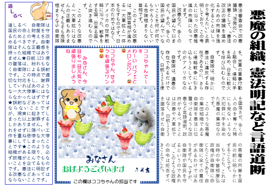 この欄はココちゃんの担当です