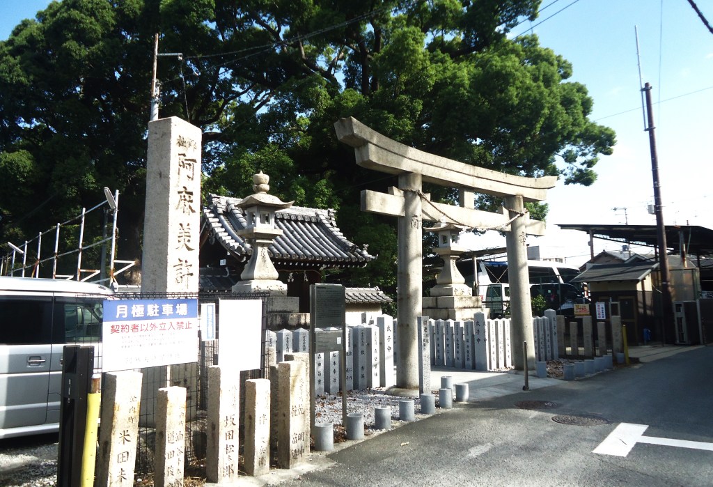 西除川沿い 赤い橋を渡ると右側に布忍神社があります