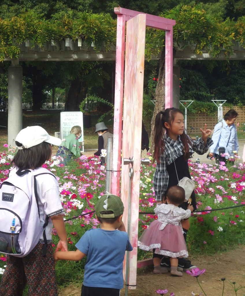 写真はたいしたことないのですが、素材になっているコスモスの花と一緒に移っている子どもたちが引き立てているのです。