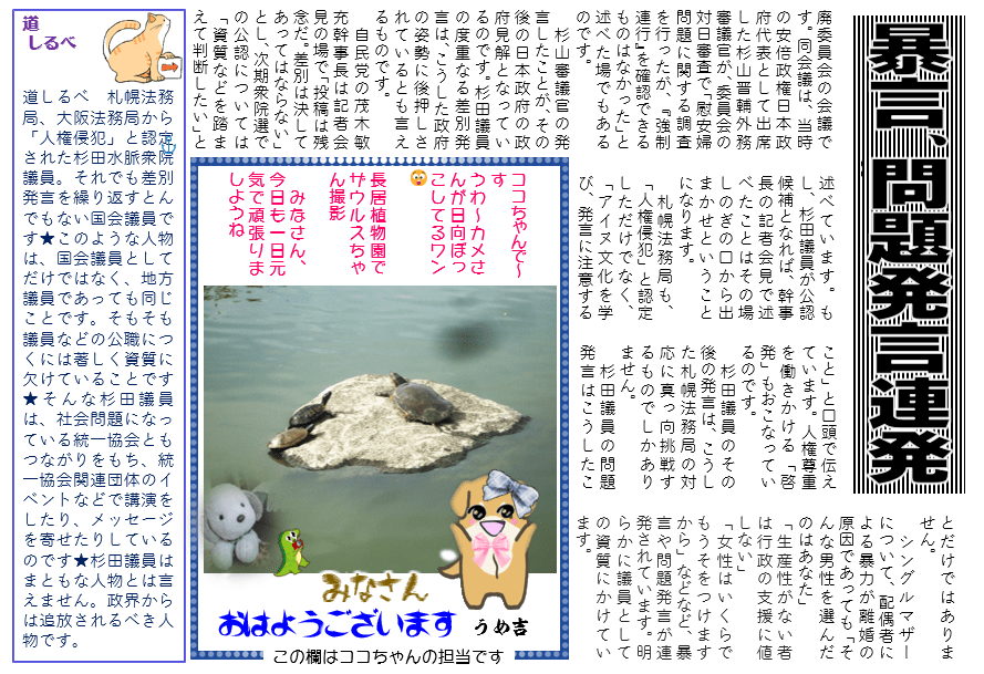 杉田議員のその後の発言は、こうした札幌法務局の対応に真向から挑戦するものでしかありません。