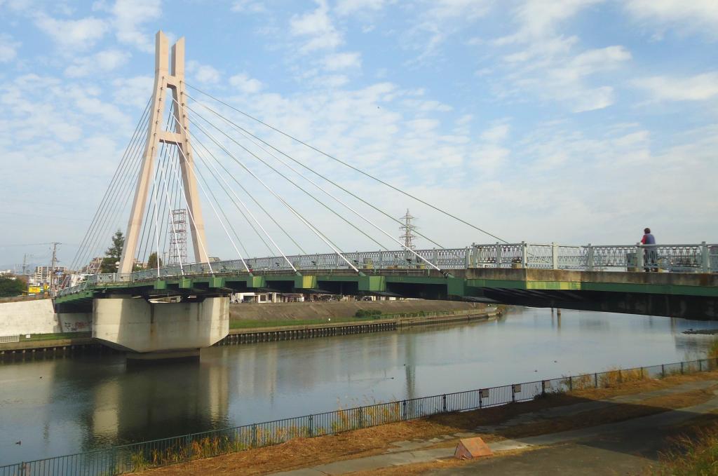 都市計画道路淀川北岸線が、旧中島大水道と交わる地点に架かる橋であり、国道2号の橋である在来の歌島橋の100mほど上流に位置しています😃