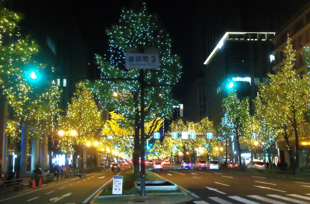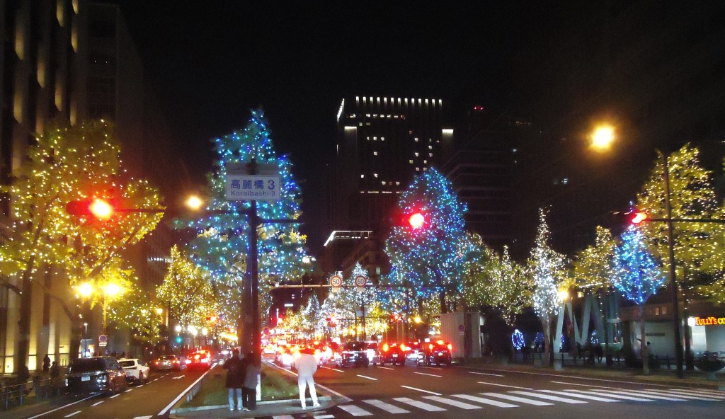 全長約4キロメートルの御堂筋を光のイルミネーションが彩りを見せています🥰