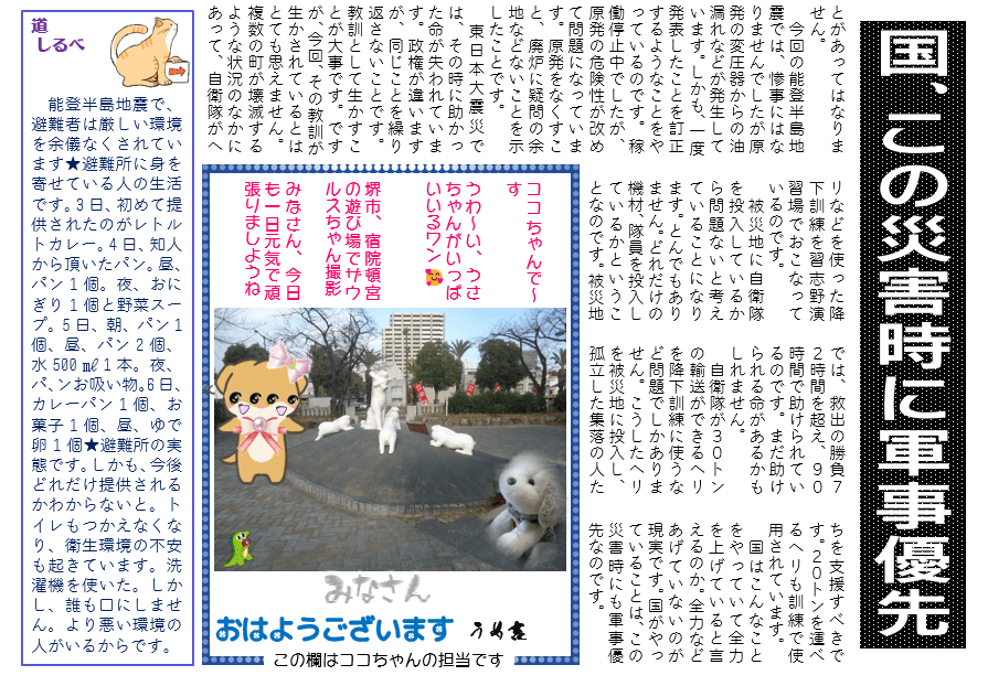 国はこんなことをやっていて全力を上げていると言えるのか。全力などあげていないのが現実です。国がやっていることは、この災害時にも軍事優先なのです。