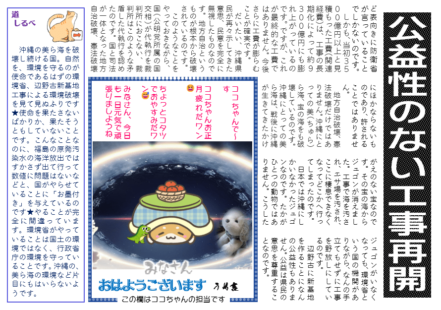 辺野古に新基地を作ることになんの公益性もありません。公益は県民の意思を尊重することなのです。