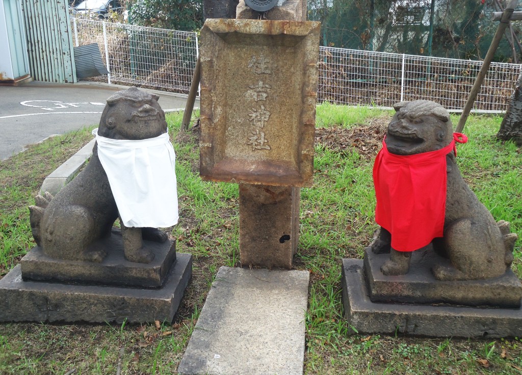 西島住吉神社の境内に鎮座するコマさんで、摂社・末社とかの護りについているわけではありません😃