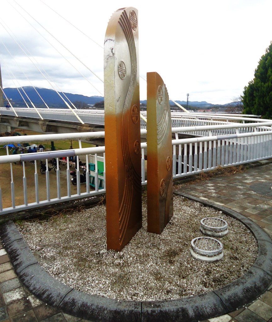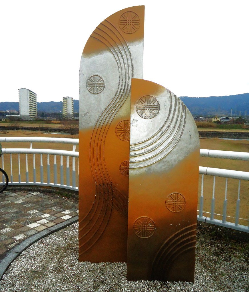 一級河川石川に架かる大阪府道802号線の歩行者・自転車専用橋のたもとにあるモニュメント、八尾河内長野自転車道を結んでいる橋です🤗