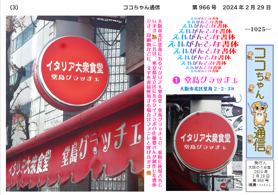 大阪市北区堂島2-2-38 大阪市北区堂島にあるイタリア大衆食堂・堂島グラッチェで、看板に使用されています 🥰 これは、東京都足立区にあるタイプラボの佐藤豊さんが制作した書体です。印刷物などに、文字を直接使用する場合はフォントと呼ばれます 🤗