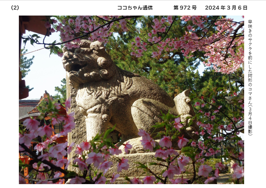 早咲きのサクラを前にした阿形のコマさん(3月4日撮影)