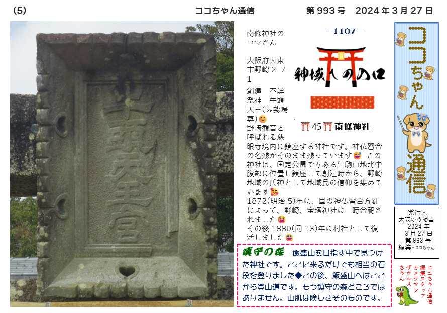 野崎観音と呼ばれる慈眼寺境内に鎮座する神社です。神仏習合の名残がそのまま残っています😅 この神社は、国定公園でもある生駒山地北中腹部に位置し鎮座して創建時から、野崎地域の氏神として地域民の信仰を集めています🥰 1872(明治5)年に、国の神仏習合方針によって、野崎、宝塔神社に一時合祀されました😫