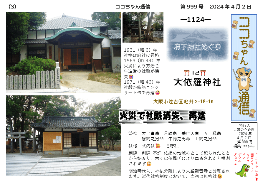 創建 創建 不詳 依網の地域神として祀られたことから始まり、古くは依羅氏により奉斎されたと推測されます🤔