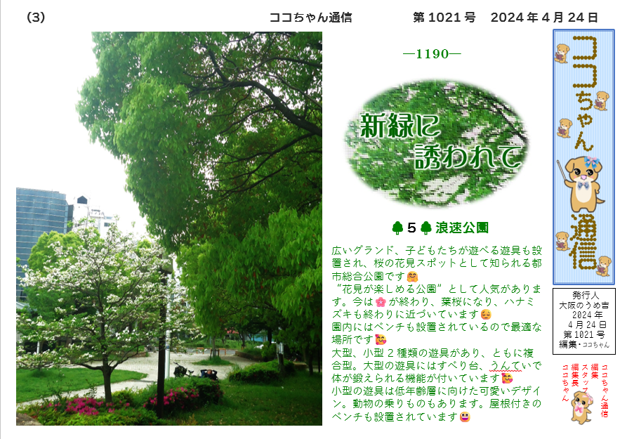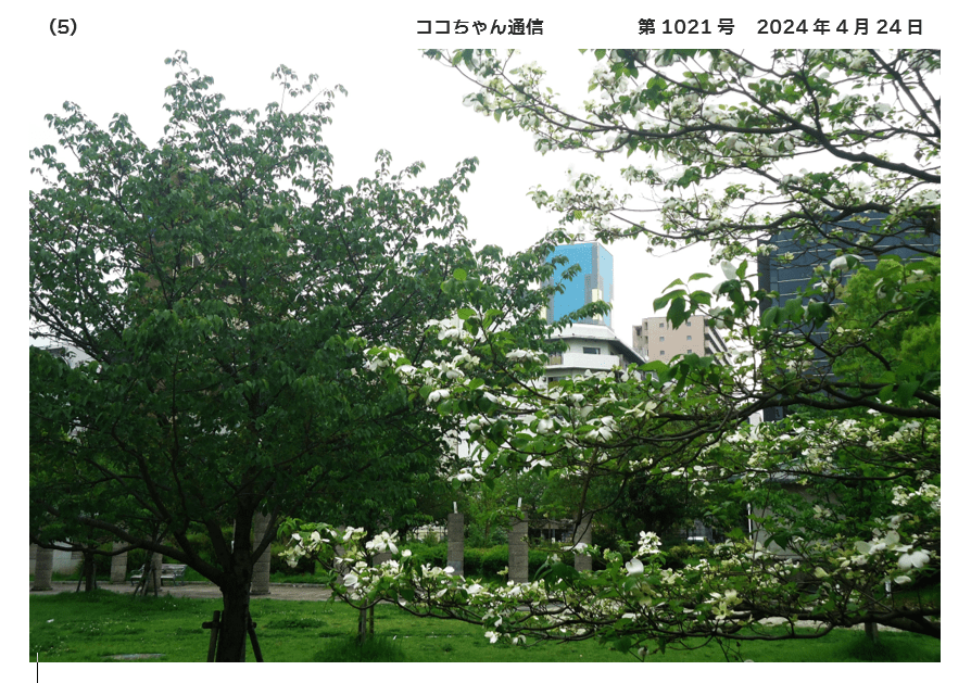 “花見が楽しめる公園”として人気があります。今は🌸が終わり、葉桜になり、ハナミズキも終わりに近づいています😔