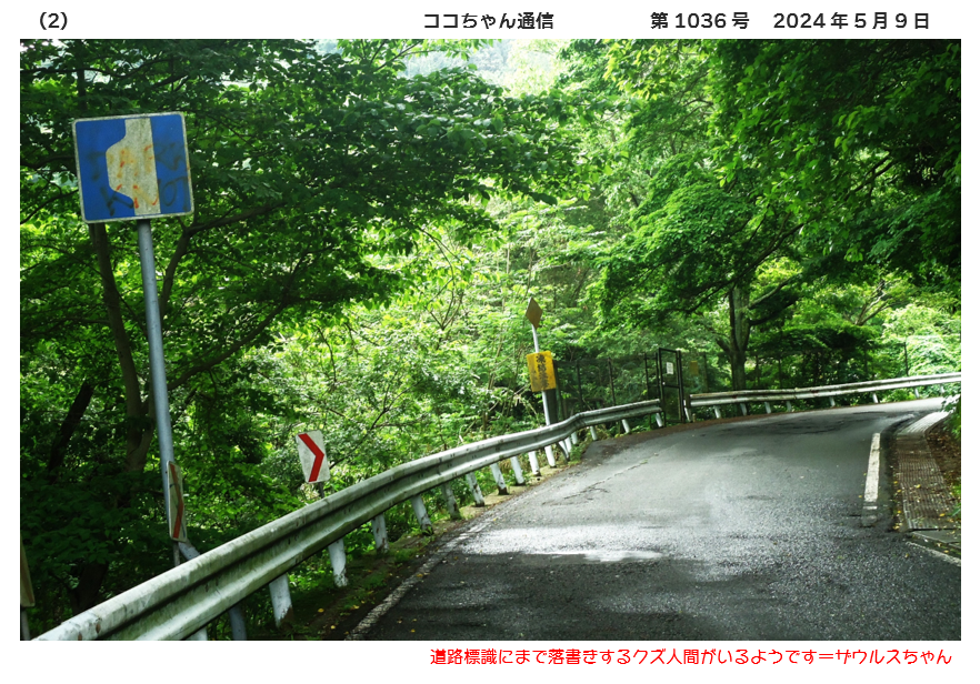 街中にも見られますが、自然公園道の道路標識にまで、心無い者の落書きが見られます。情けなさを感じます😫😫